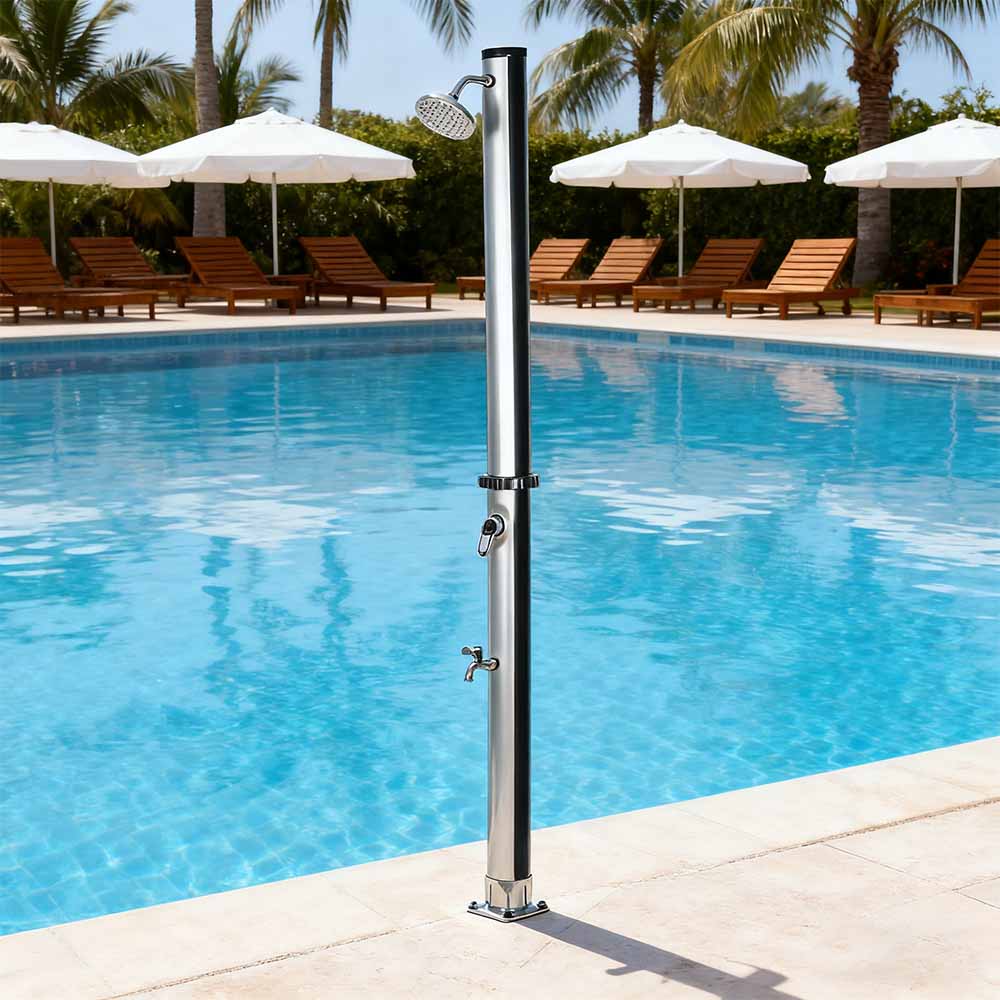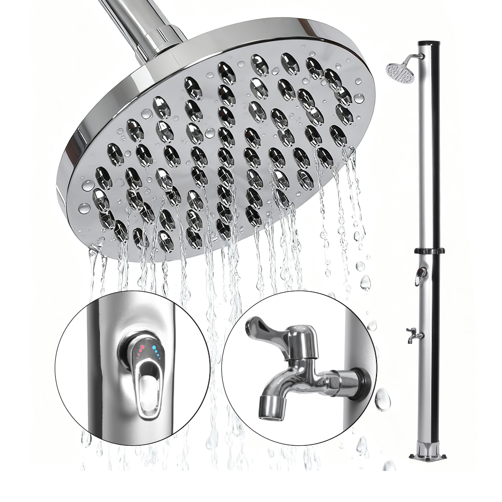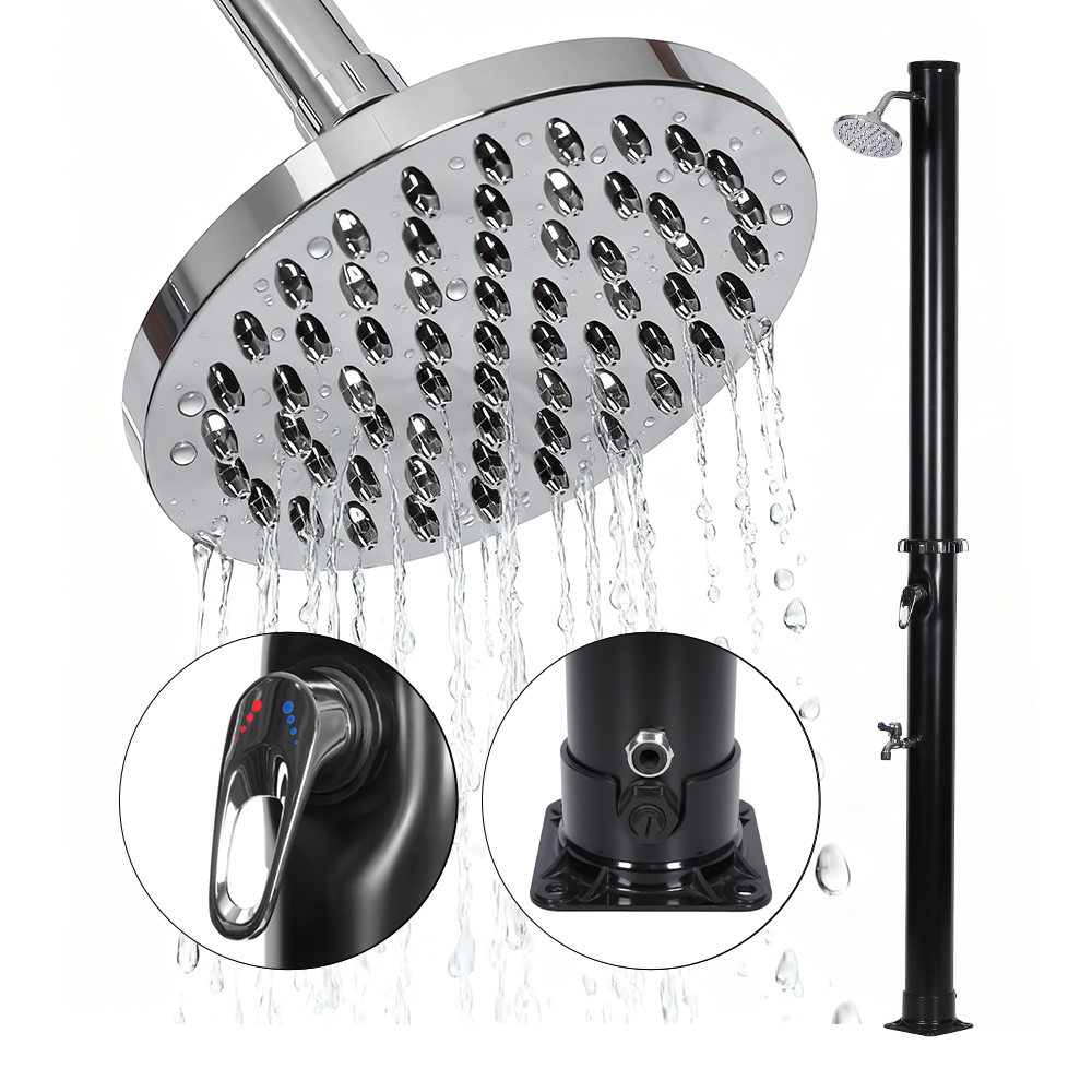 Dış mekan konforu için tasarlanan bu LY18L01 18L dış mekan bahçe pvc güneş duş kolonu, bahçeler, havuz kenarı alanları ve kamp için idealdir ve harici enerji girişi olmadan su ısıtmadaki en son yeniliklerden birini temsil eder. Isıtılmış duş borusu suyunu soğuk hortum suyuyla harmanlayan tek kollu batarya sayesinde su sıcaklığının kolayca kontrol edilmesini sağlayarak konforlu bir deneyim sağlar. Güvenilir stabilite ve destek için dayanıklı bir PVC tabanla üretilen bu ürün aynı zamanda, entegre bilyeli mafsalı aracılığıyla 180° ayarlanabilir açıya sahip, ferahlatıcı bir soğutma etkisi sağlayan büyük bir yağmur duşu başlığına sahiptir. Kurulumun hızlı ve basit olması, onu çeşitli dış mekan ayarlarına kullanışlı bir eklenti haline getiriyor.