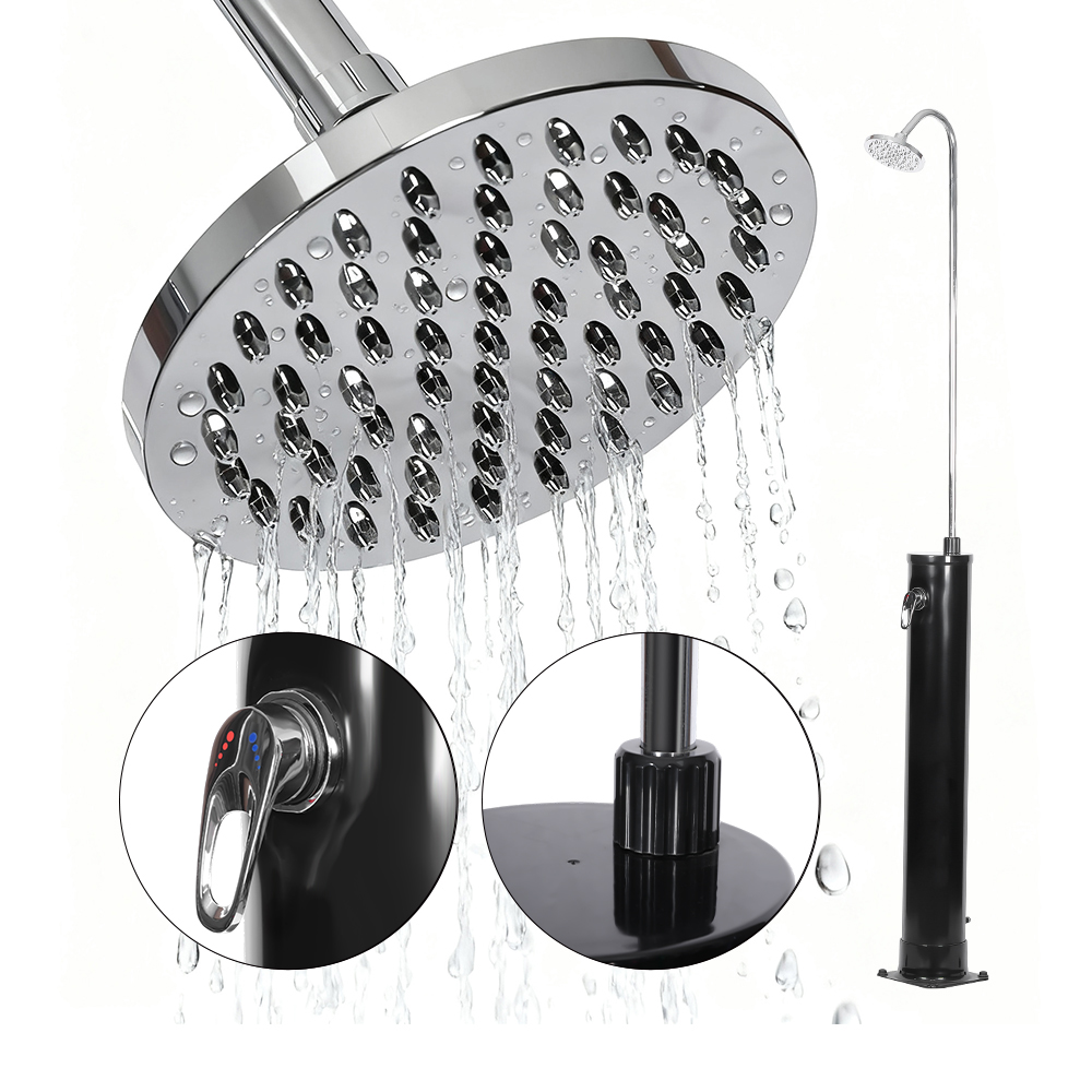 Güçlü güneş ışığına maruz kaldığında, 18/20 litrelik duş borusundaki su, elektriğe ihtiyaç duymadan doğal olarak yaklaşık 60°C'ye kadar ısınarak kullanışlı ve çevre dostu bir duş çözümü sunuyor. Duş borusunu kolaylıkla doldurmak için sıradan bir bahçe hortumu takmanız yeterlidir. UV'ye dayanıklı plastikten üretilen bu LY18L01-B 18L yuvarlak gövdeli açık bahçe yüzme havuzu güneş duşu, dayanıklılık için tasarlanmıştır ve gerektiğinde kolayca sökülüp taşınabilir. Sağlam paslanmaz çelik, PVC, ABS, bakır ve metal tabanı güvenilir stabilite sağlar ve sık kullanım sırasında bile üniteyi güvenli bir şekilde yerinde tutar. Ek olarak, hızlı doldurma için standart bir bahçe hortumu konektörüne ve duş borusunun kolayca boşaltılmasına olanak tanıyan bir tahliye tapasına sahiptir, bu da duşun kış için saklanmaya hazırlanmasını kolaylaştırır.
