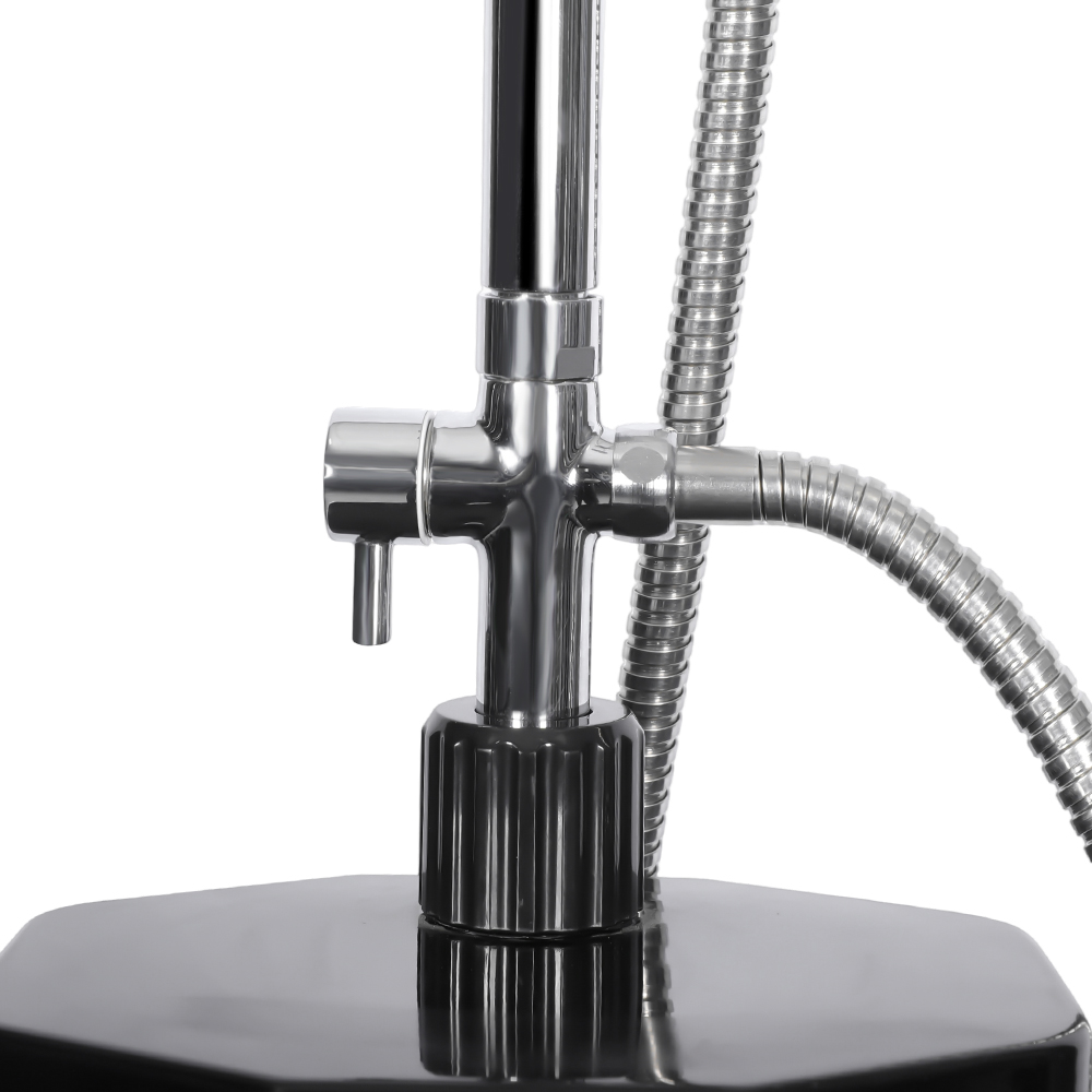 Mobil paslanmaz çelik tepe duşuna sahip bu LY18L09-B 18L havuz başı pvc güneş duşu, bahçede, havuz kenarında veya kamp gezilerinde olsun, çeşitli dış mekan ortamlarına konfor ve rahatlama getirmek için tasarlanmıştır ve harici enerji kaynaklarına ihtiyaç duymadan sıcak suyun keyfini çıkarmak için modern bir çözüm sunar. 180°'ye kadar kolay ayarlamaya olanak tanıyan, kullanımda esneklik sağlayan ve kurulumu basitleştiren yerleşik bilyeli mafsallı büyük boy yağmur duşu başlığına sahiptir. Esnek yağmur ormanı tarzı duş başlığı, su akışını kolayca kontrol etmenize olanak tanıyarak deneyimi geliştirir ve doğal bir şelalenin altında durmaya benzer rahatlatıcı, spa benzeri bir his yaratır. Bu özelliklerin tümü, canlandırıcı ve kişiselleştirilebilir bir duş deneyimi sunarak, onu açık havada hem pratiklik hem de rahatlama arayan herkes için ideal hale getiriyor.
