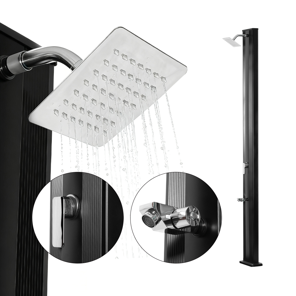 Bu LY30L02 dış mekan yağmur duşu başlıklı tek kollu duş standı, rahat ve ferahlatıcı bir duş deneyimi için bol su sağlayan 30 litrelik alüminyum duş borusuna sahiptir ve bu da onu bahçede veya açık havada kullanım için ideal kılar. Tek kollu karıştırıcı musluğu, hızlı ve kolay sıcaklık ayarına olanak tanıyarak kullanıcıların su sıcaklığını tercih ettikleri ayara ayarlamasına olanak tanır. Büyük yağmur duşu başlığı, daha fazla rahatlık ve konfor için soğutma etkisini artıran ve kurulumu basitleştiren, 180° dönebilen entegre bir bilyeli mafsala sahiptir.